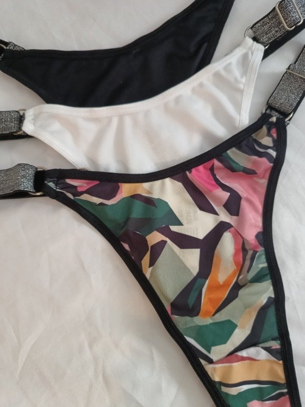Pack x 3 colaless regulable de elástico ancho con lurex plateado. Tela microfibra.
